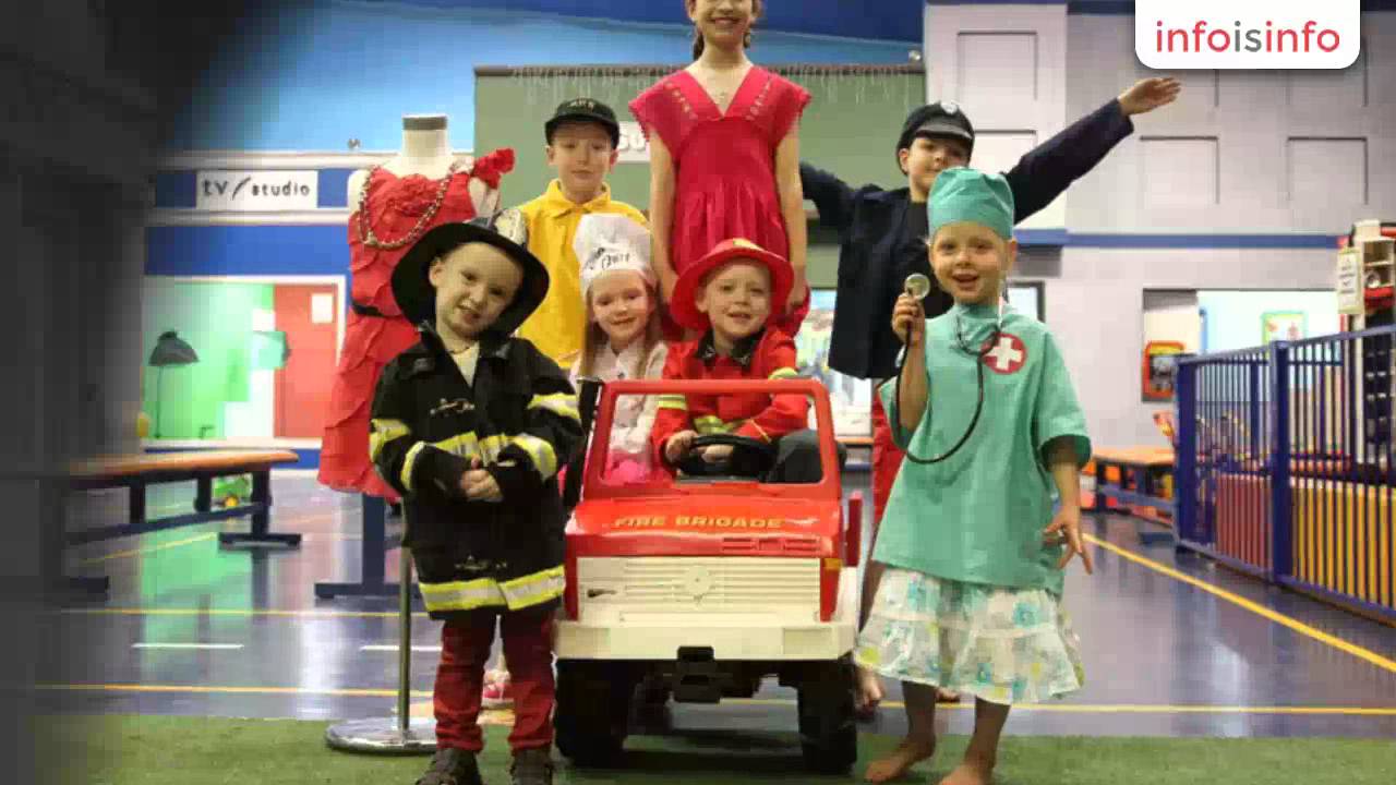 Kids can pretend to be doctors in the Hospital or teachers at the School. There are fire and police stations, post office, restaurant, rock climbing wall and many more.